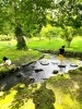 冷たい水が流れる小川で水遊び